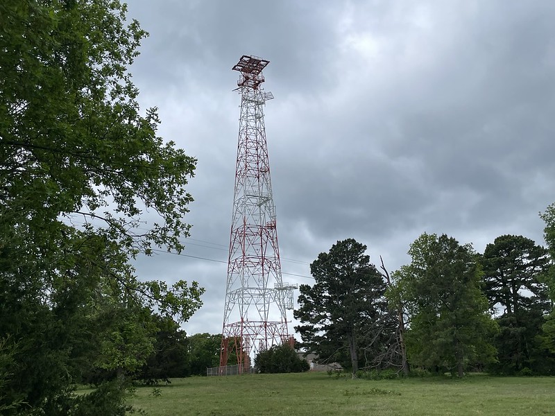 Edit (Feb 2018): According to FCC Antenna Structure Registration (#1010196), the tower now belongs to “Communication Enhancement”, as site #20031. It stands at 263′ tall.